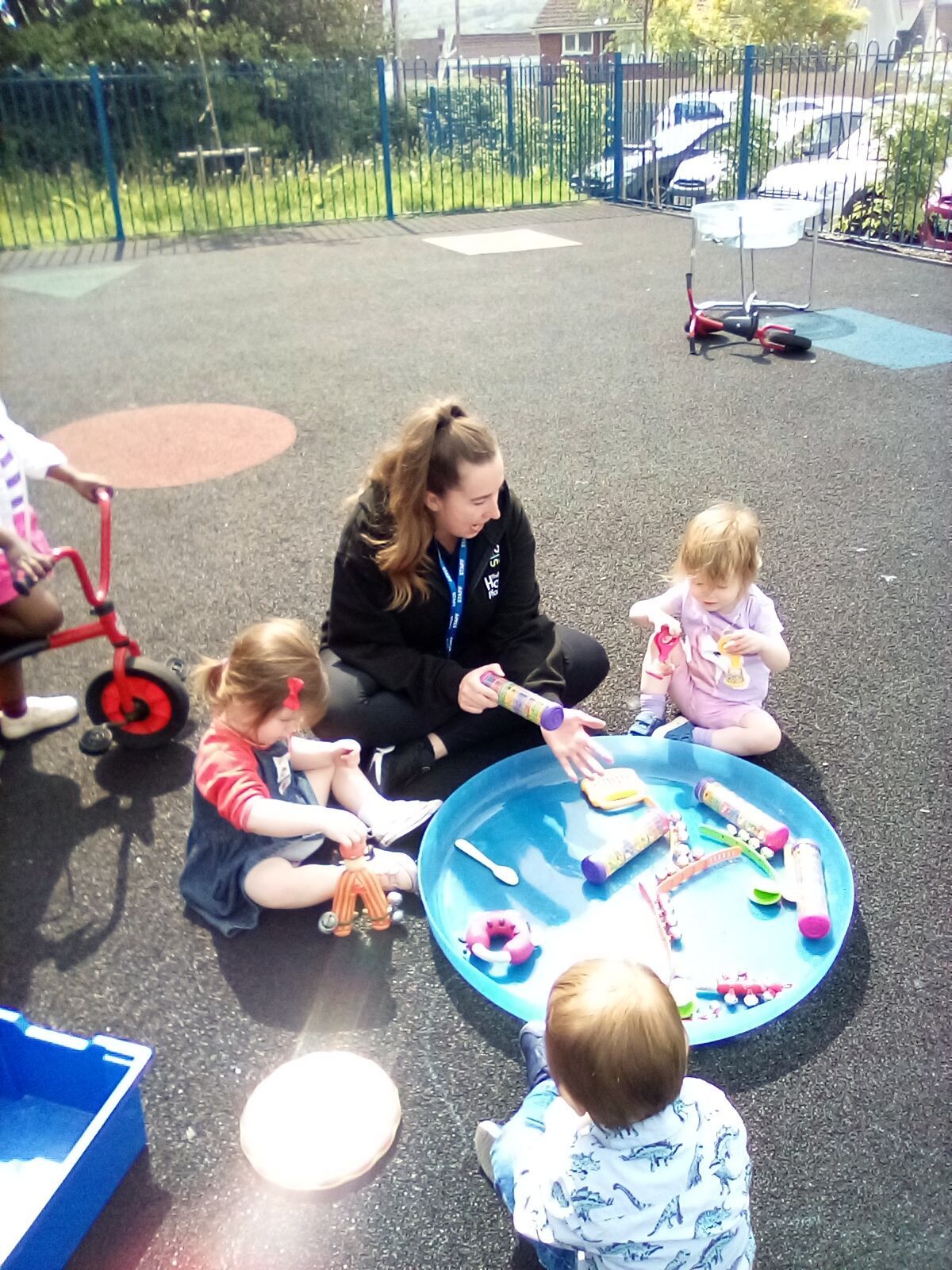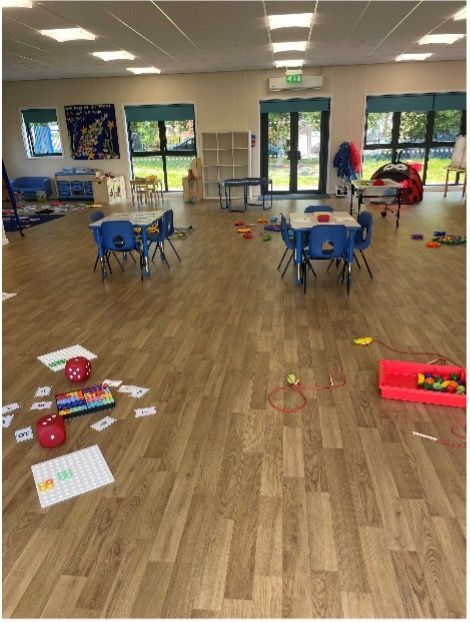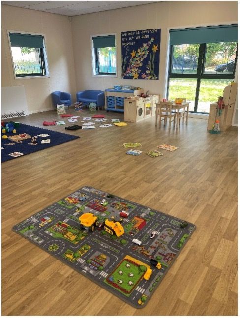 The setting provides appropriate areas for a range of needs including a snack preparation / consumption area, a large play area and outdoor play space to the front and rear of the building.
